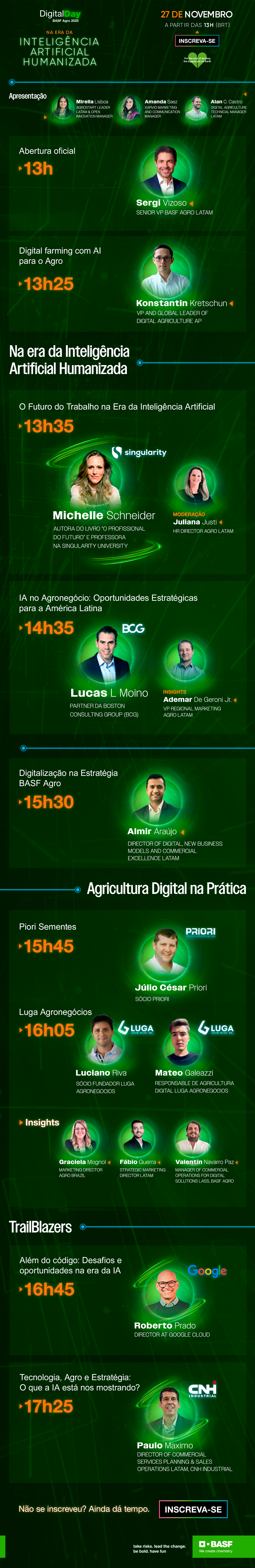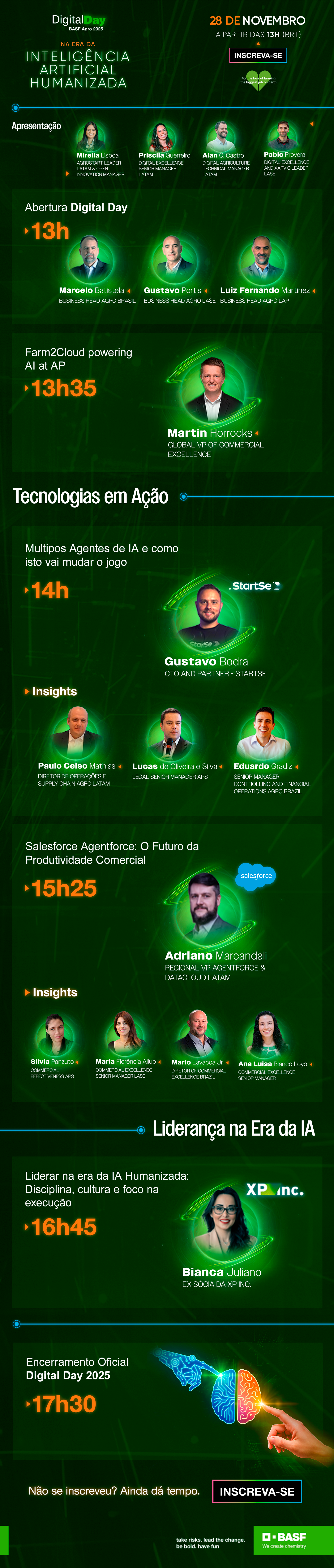 A programação incluirá a participação de líderes referências do mercado juntamente com lideranças BASF, com o objetivo de mostrar na prática como a Inteligência Artificial pode ser aplicada de forma concreta e alinhada às necessidades do campo.